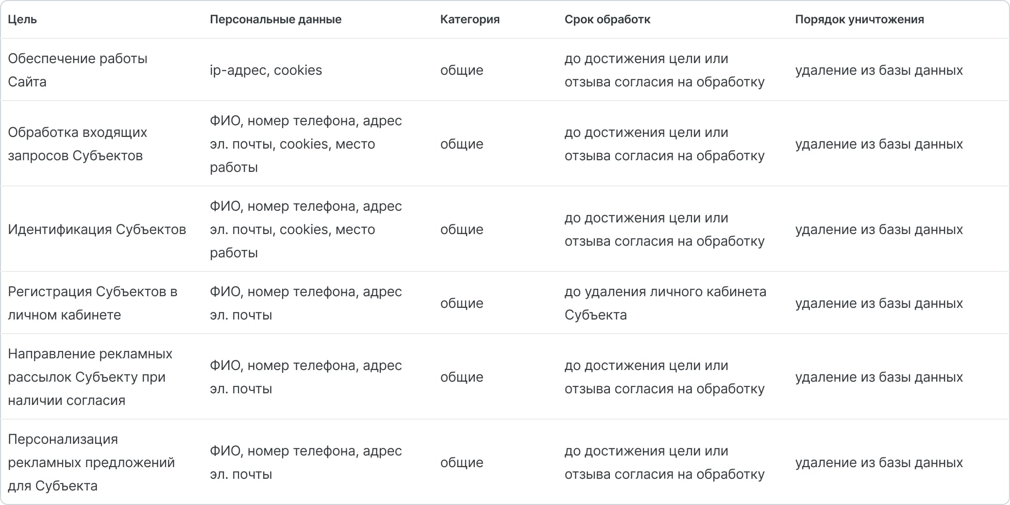 любое действие (операция) или совокупность действий (операций) с Персональными данными, совершаемых с использованием средств автоматизации или без их использования. Обработка включает в себя, в том числе: сбор, запись, систематизацию, накопление, хранение, уточнение (обновление, изменение), извлечение, использование, передачу, обезличивание, блокирование, удаление, уничтожение